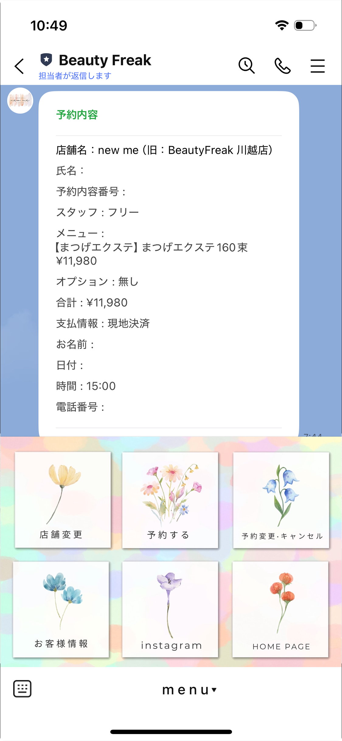 LINEの予約システムを使ってご来店希望の日時にてご予約くださいませ。